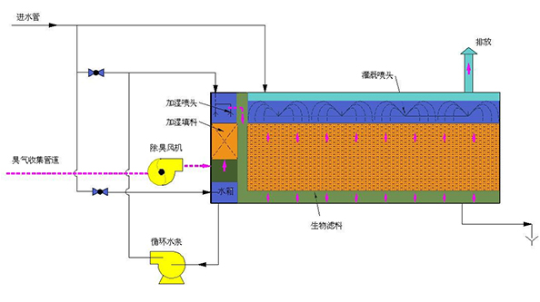生物滤池除臭具有生物技术、环保卫生、无二次污染、抗冲击能力强、处理时间短、效率高,可同时处理含有多种污染物的废气,生物菌种一次挂膜、菌种种类多、接种时间短、占地面积小、操作简单、建设成本低、运行费用低、无需添加药剂等特点。